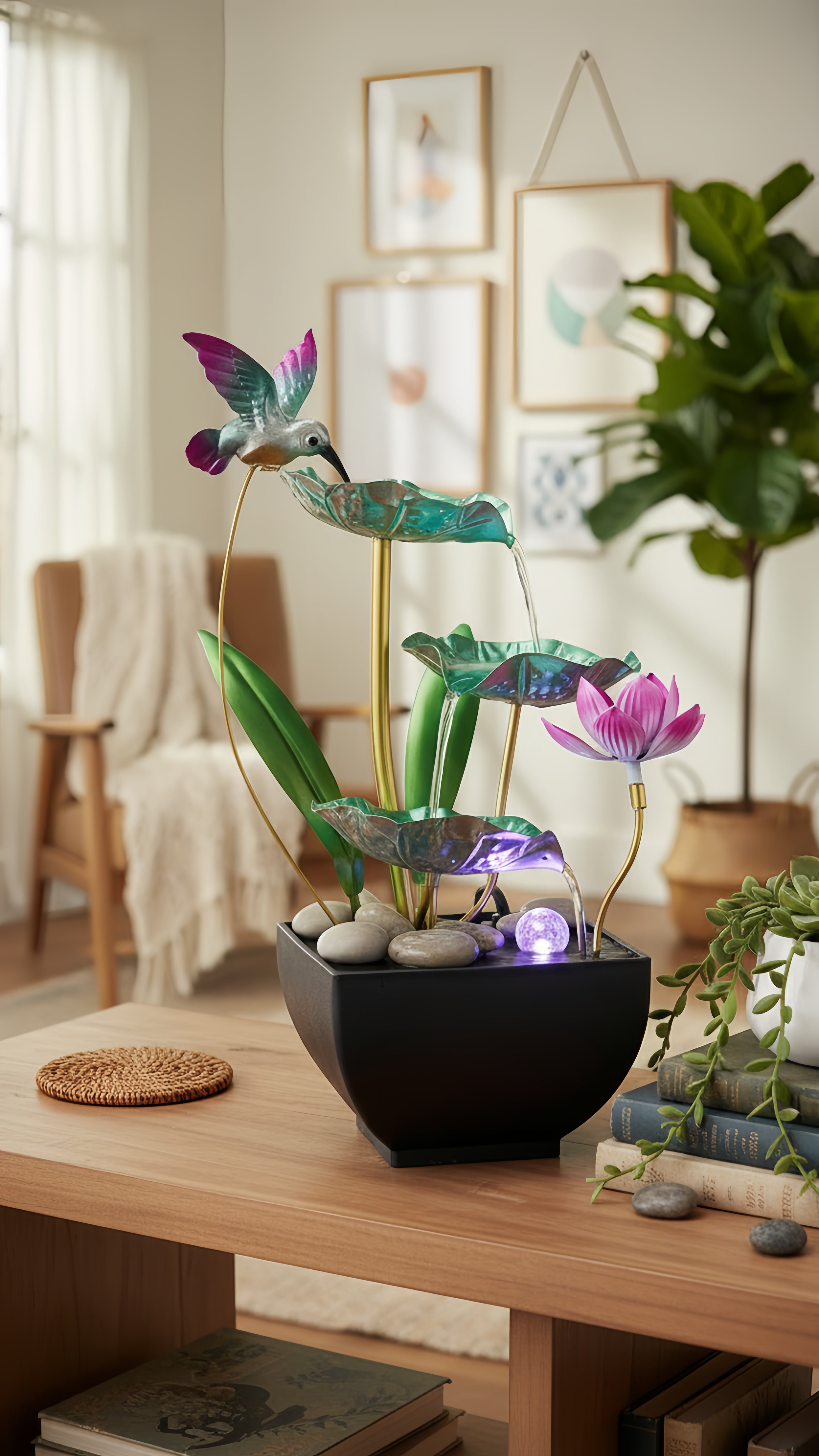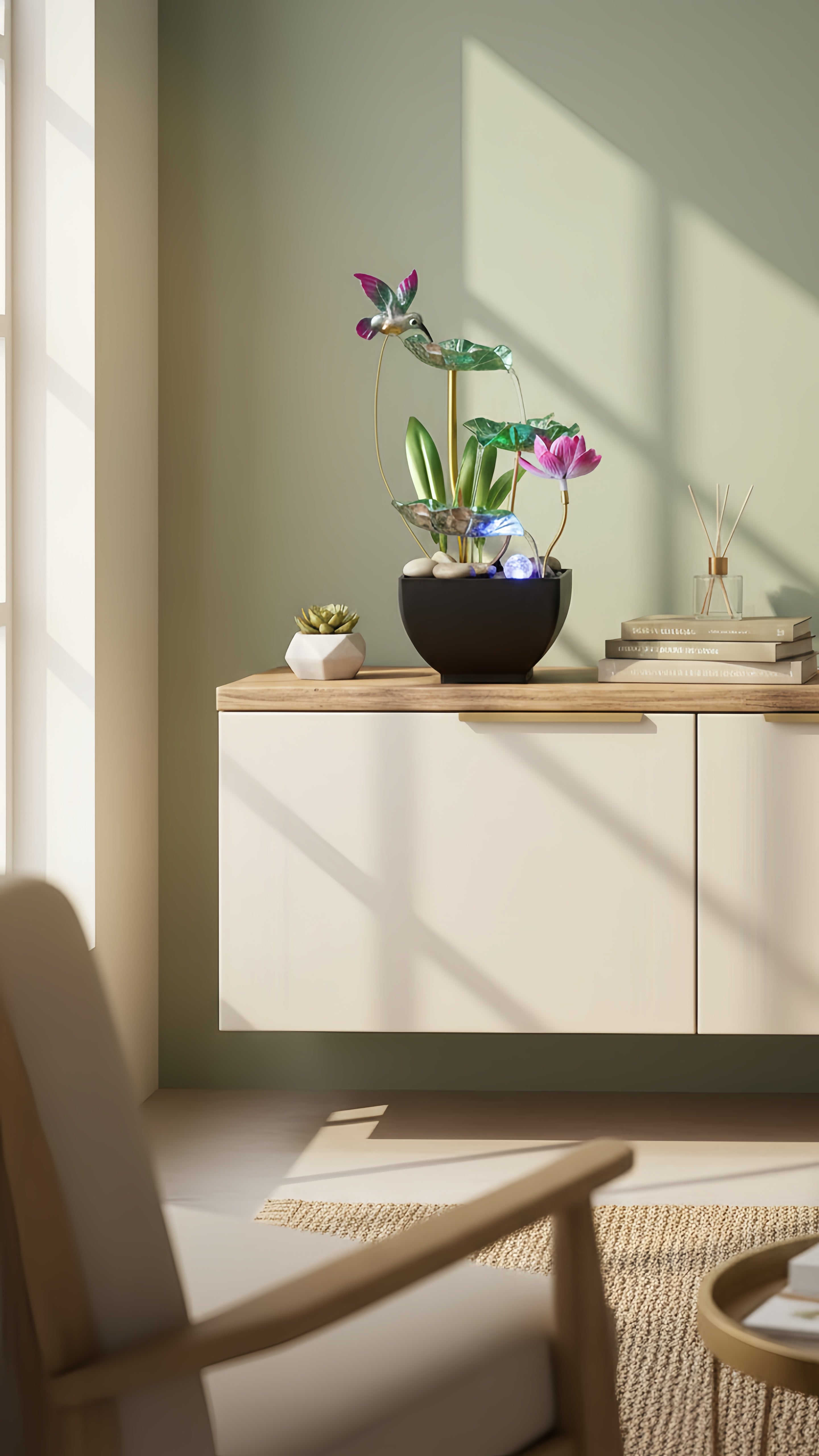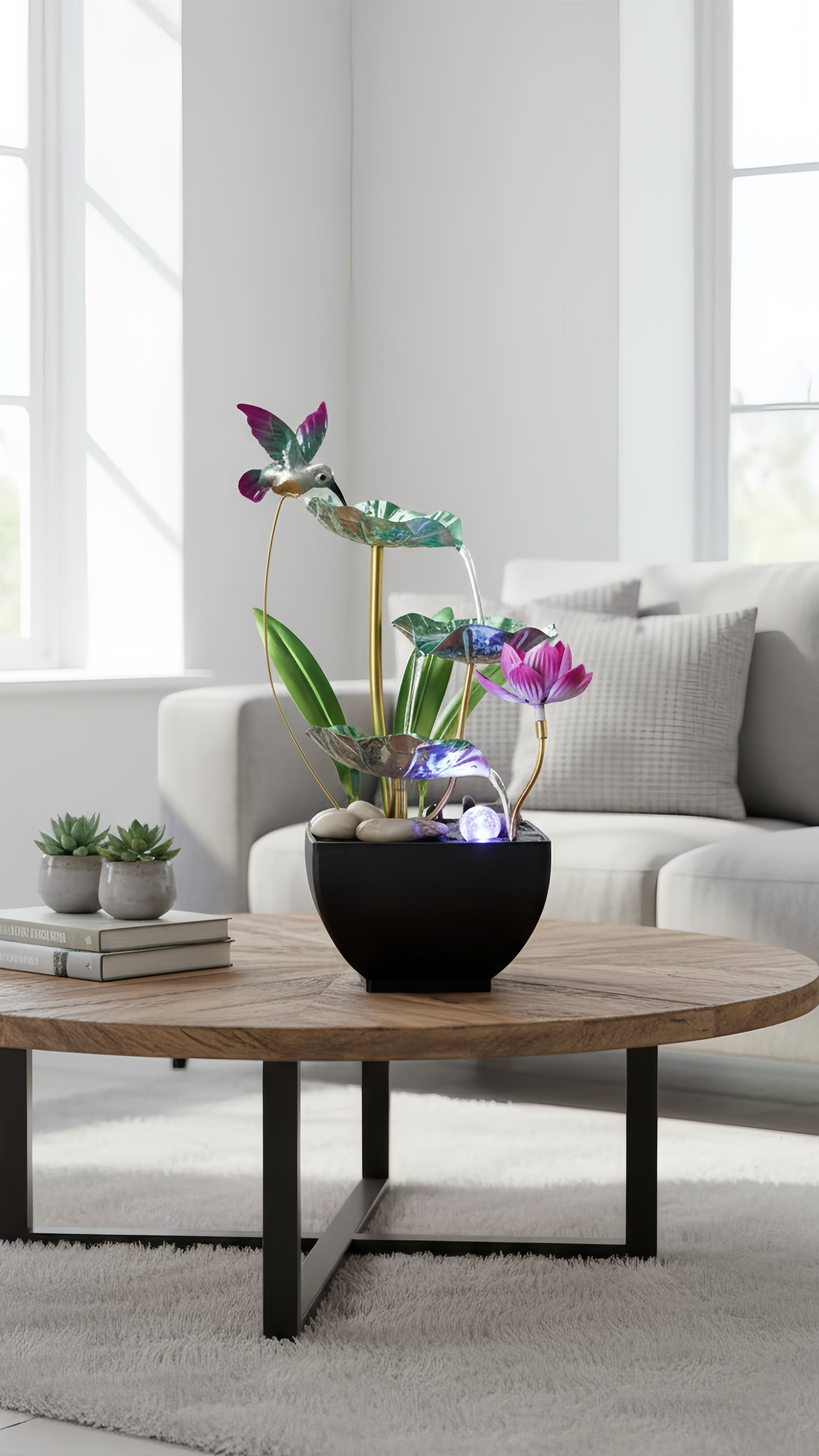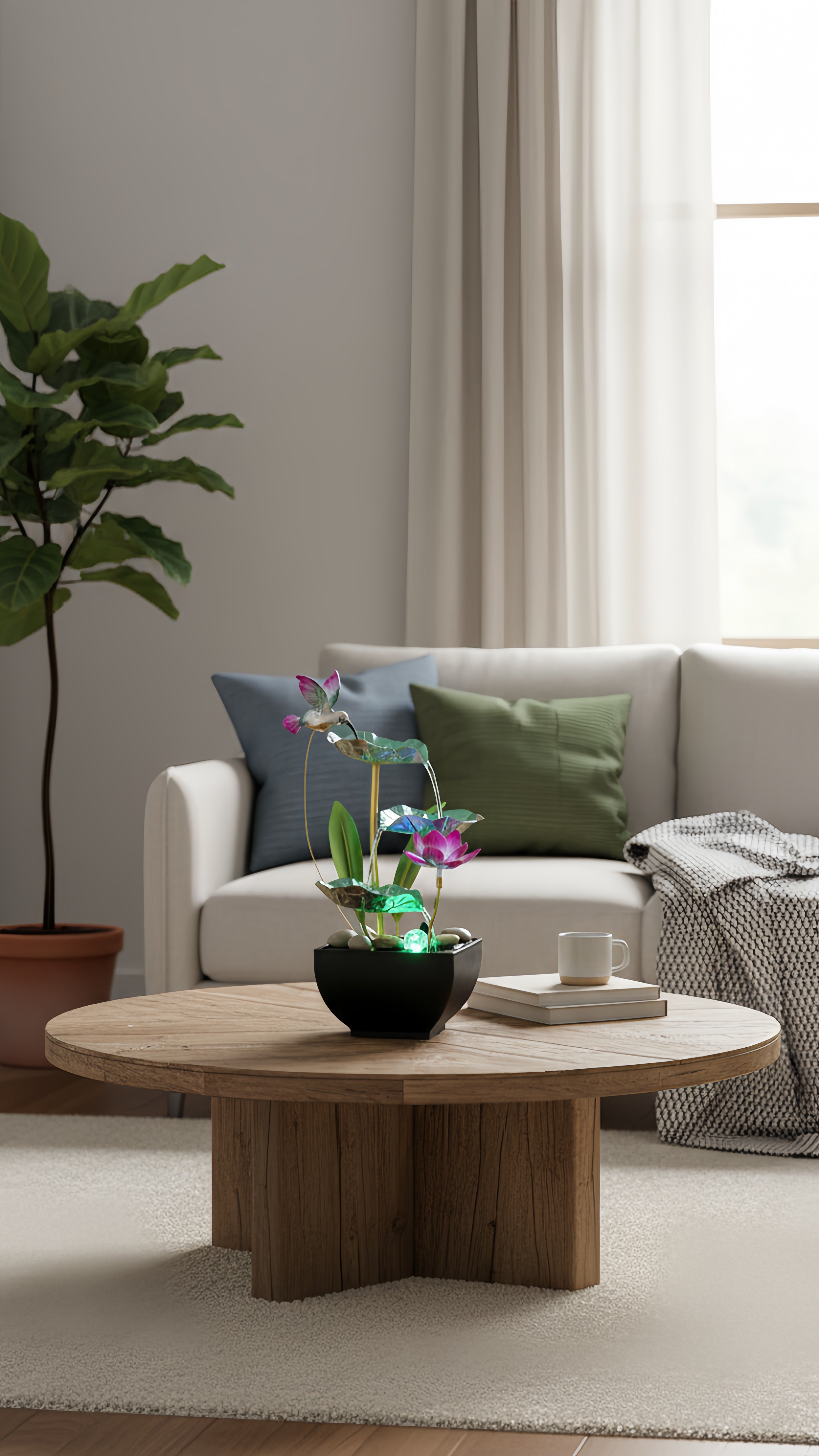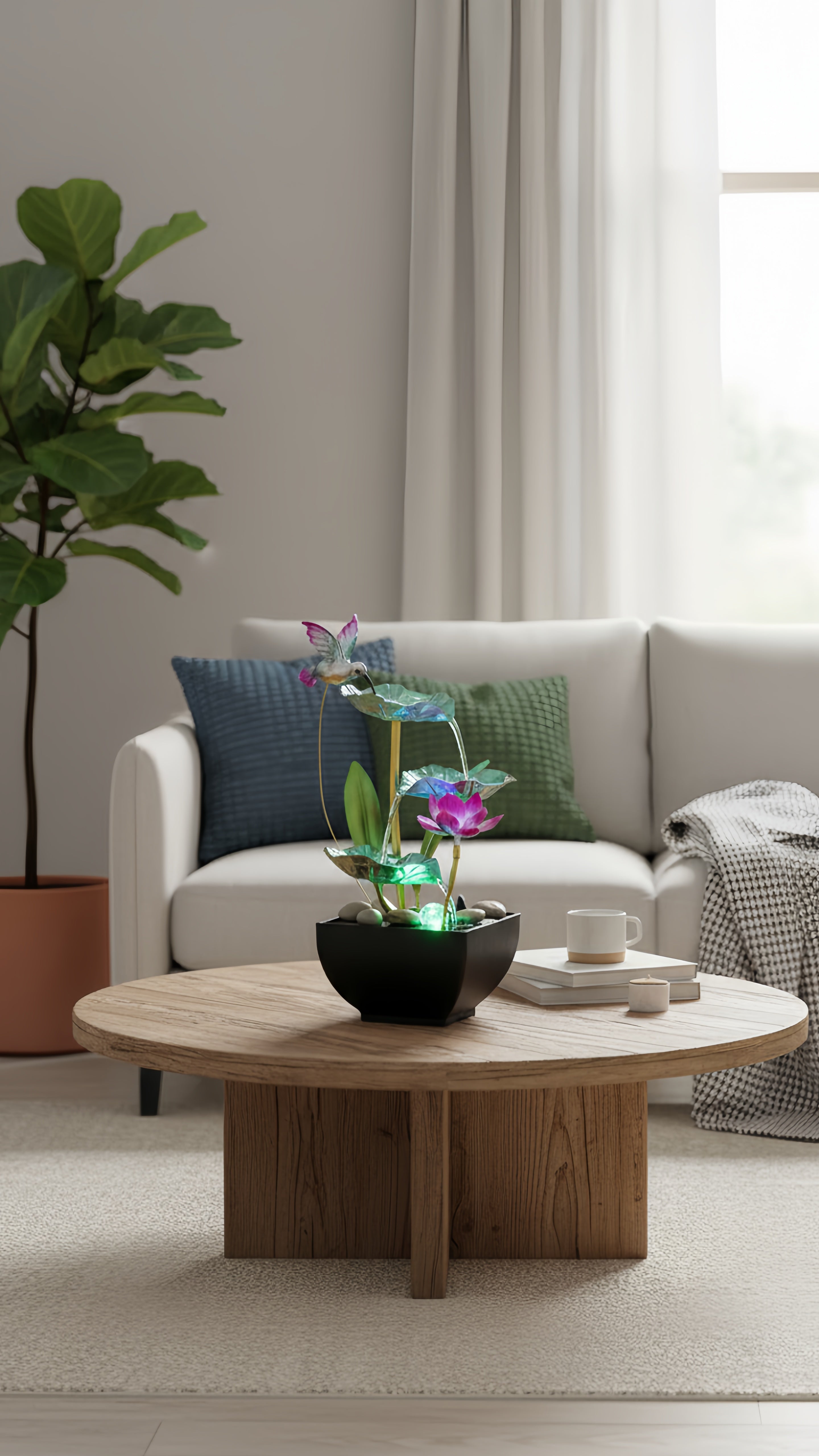 Elle insuffle une ambiance zen immédiate, transformant n'importe quelle pièce en un havre de paix. Le doux murmure de l'eau qui cascade crée une atmosphère relaxante et une esthétique moderne que vos invités vont adorer.