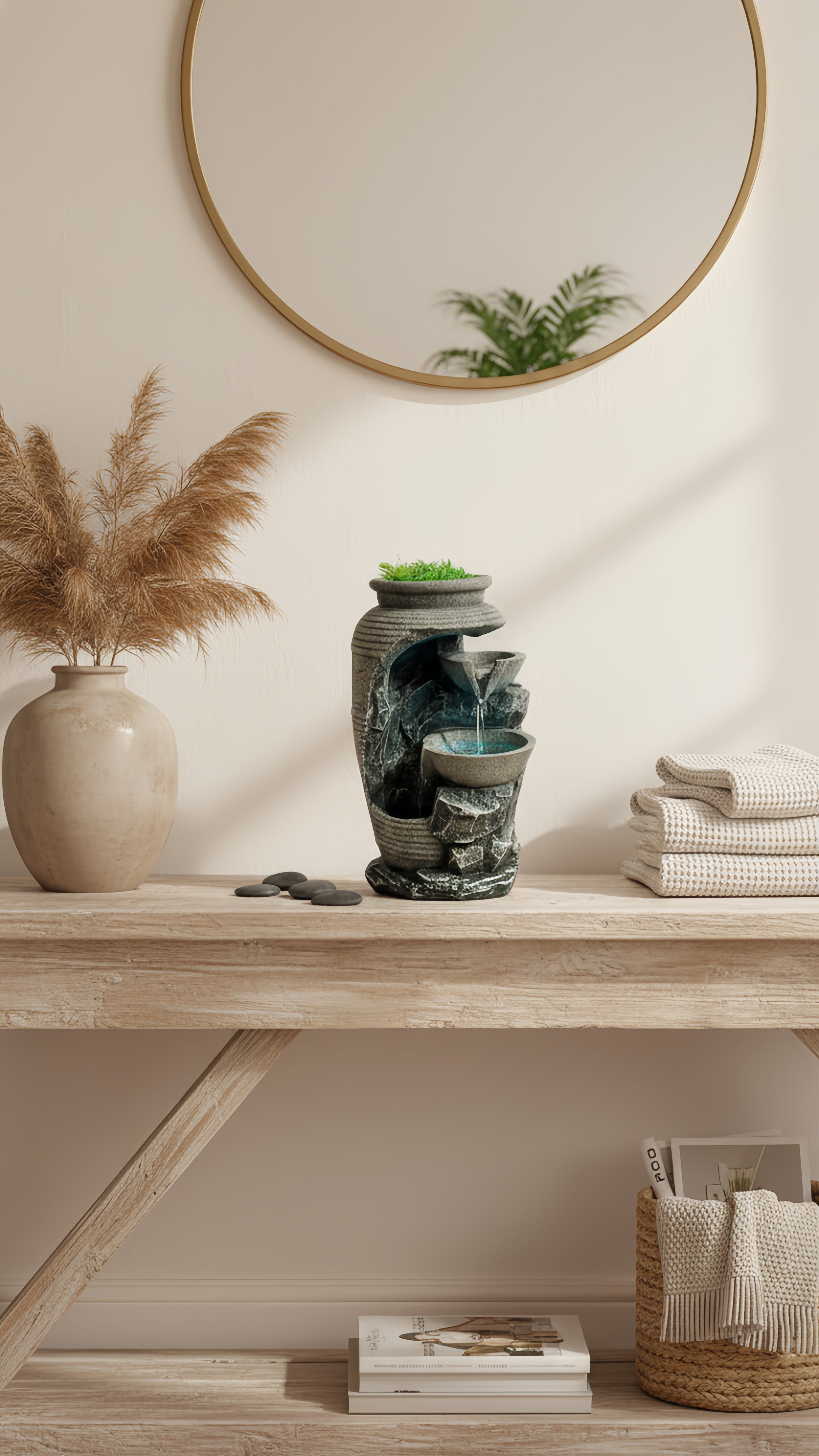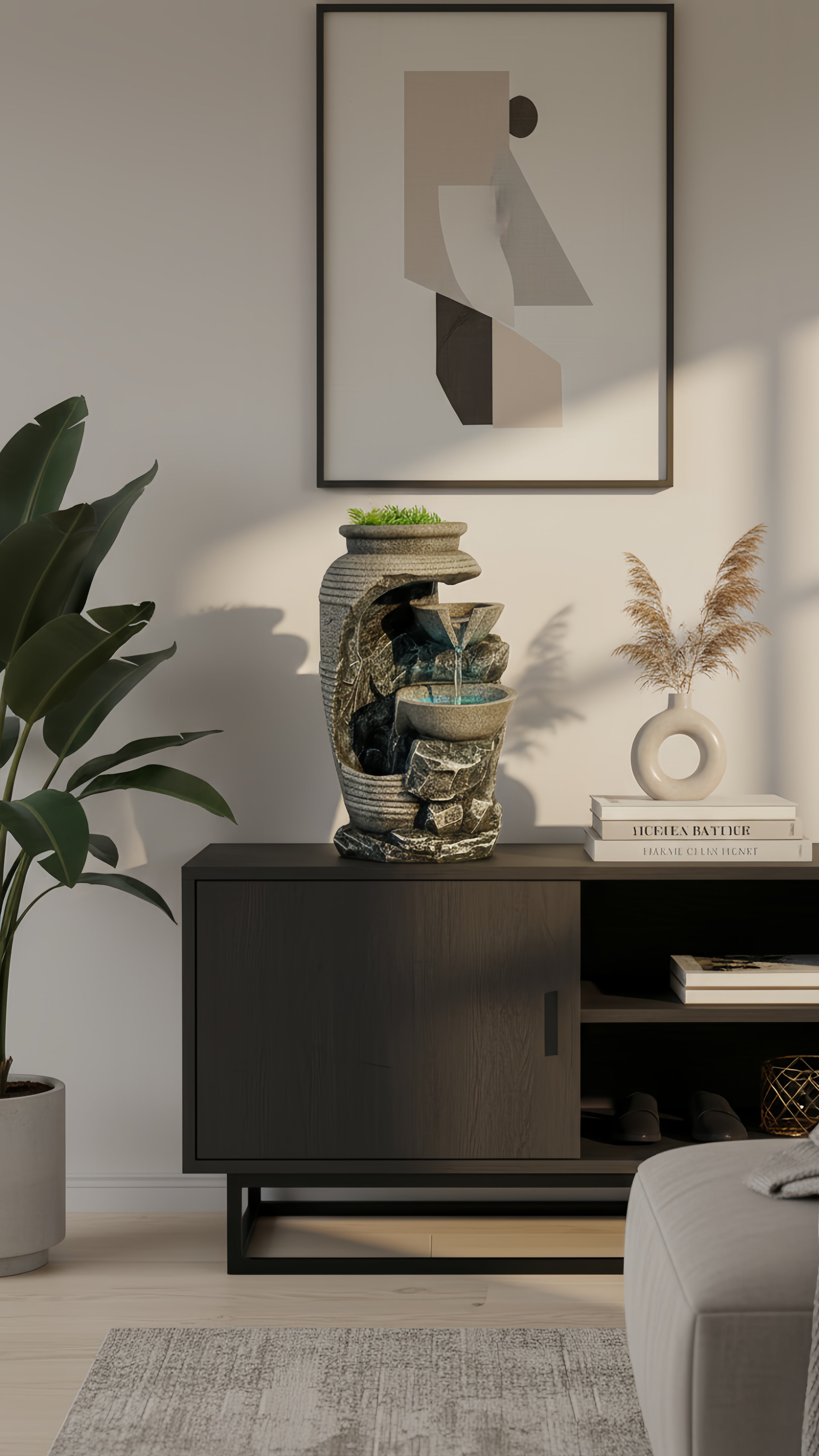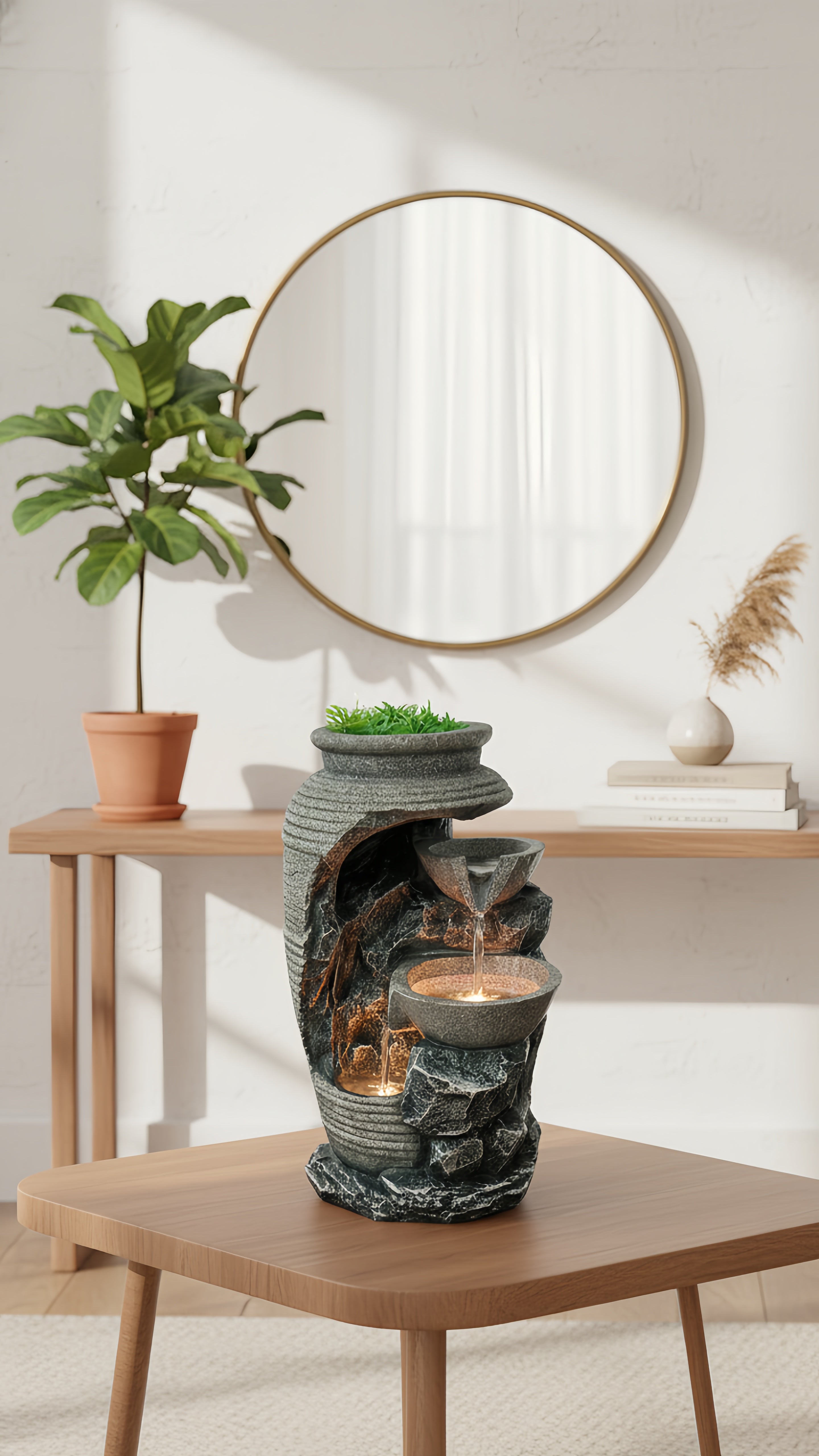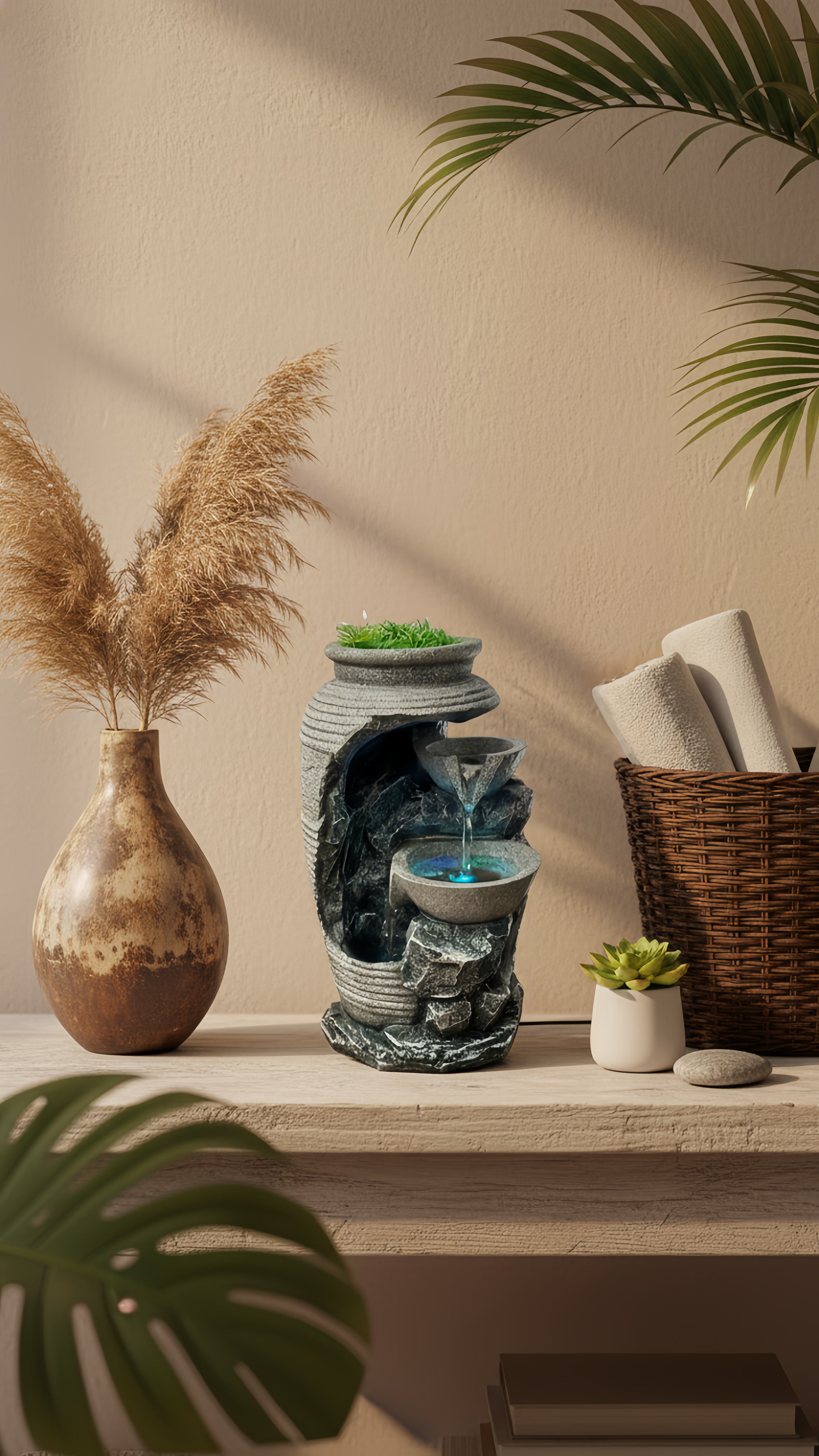 Oubliez les décos fades ! Son design moderne, ses finitions pierre et sa touche de verdure créent un point focal élégant. C'est plus qu'une fontaine, c'est une œuvre d'art qui respire la nature, même en plein appartement. Vos amis vont adorer.