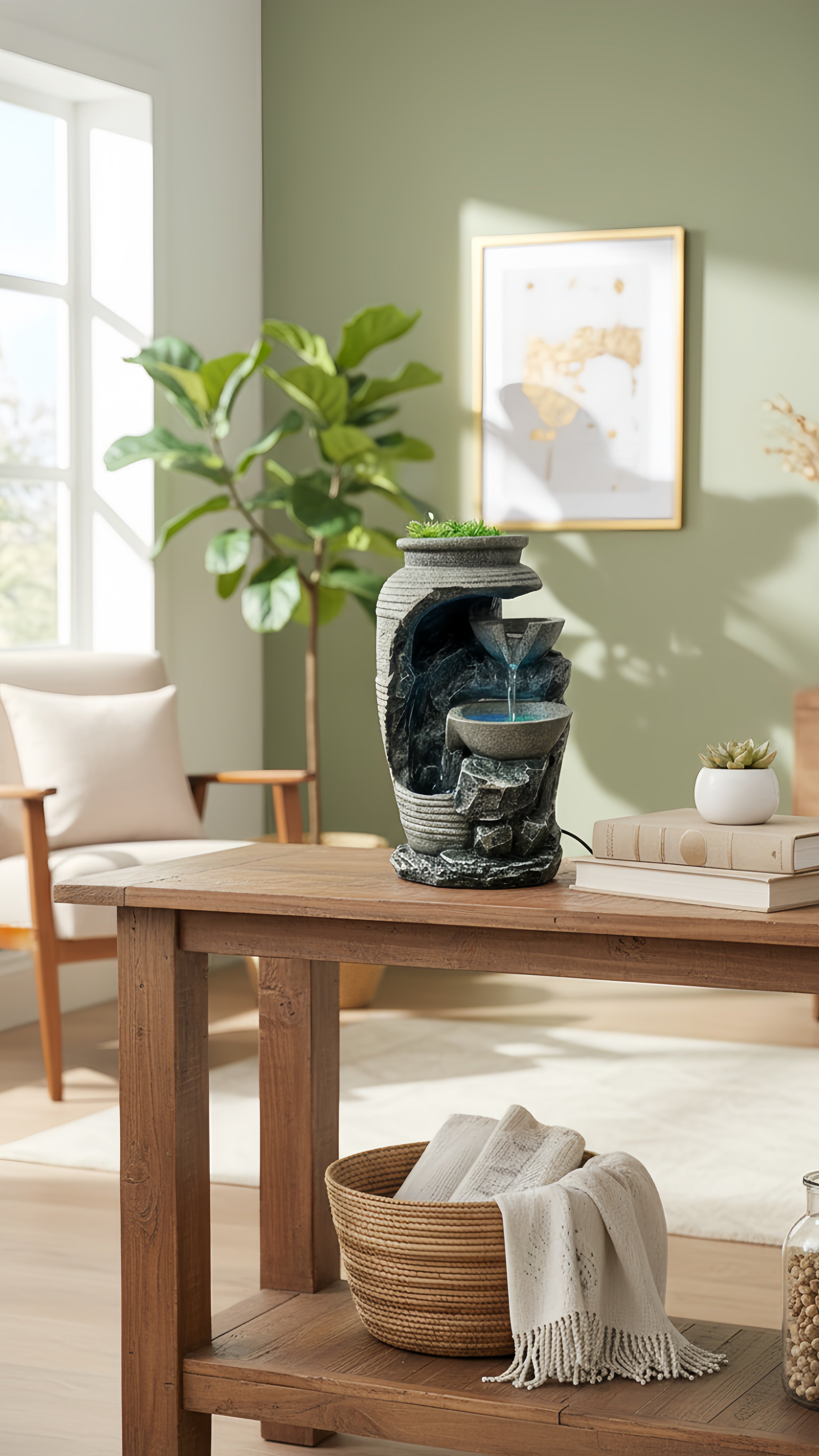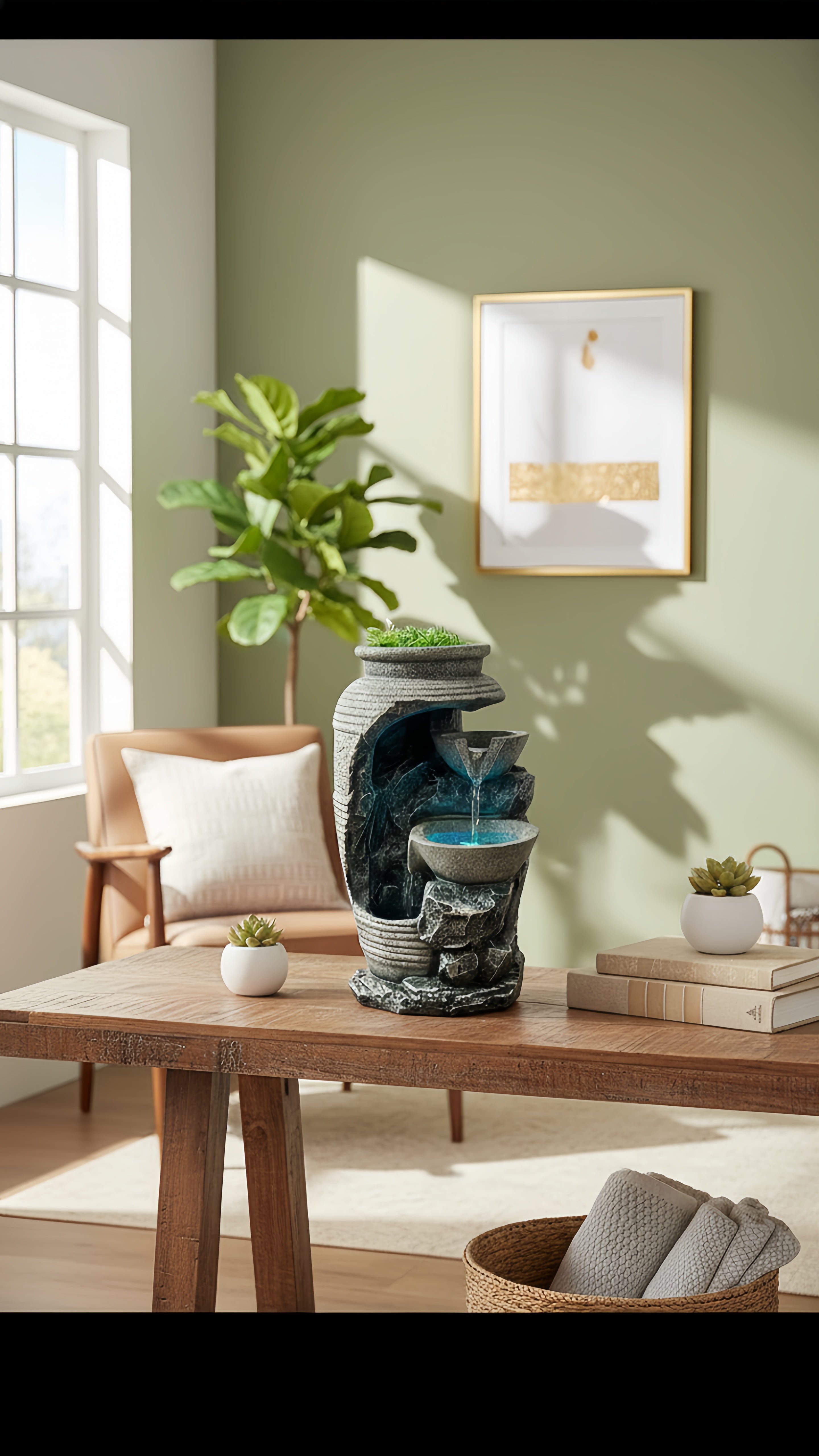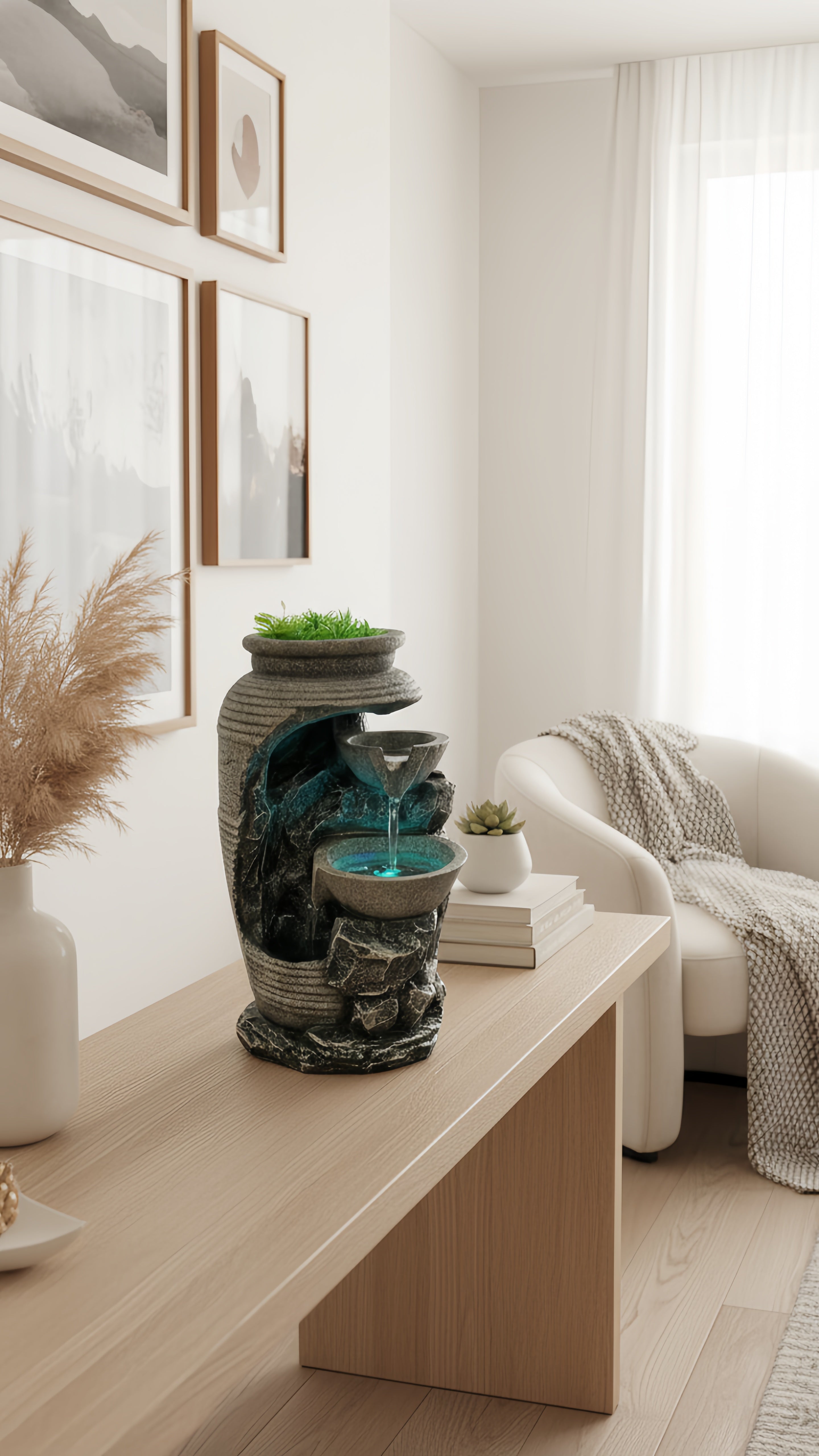 Oubliez les décos fades ! Son design moderne, ses finitions pierre et sa touche de verdure créent un point focal élégant. C'est plus qu'une fontaine, c'est une œuvre d'art qui respire la nature, même en plein appartement. Vos amis vont adorer.