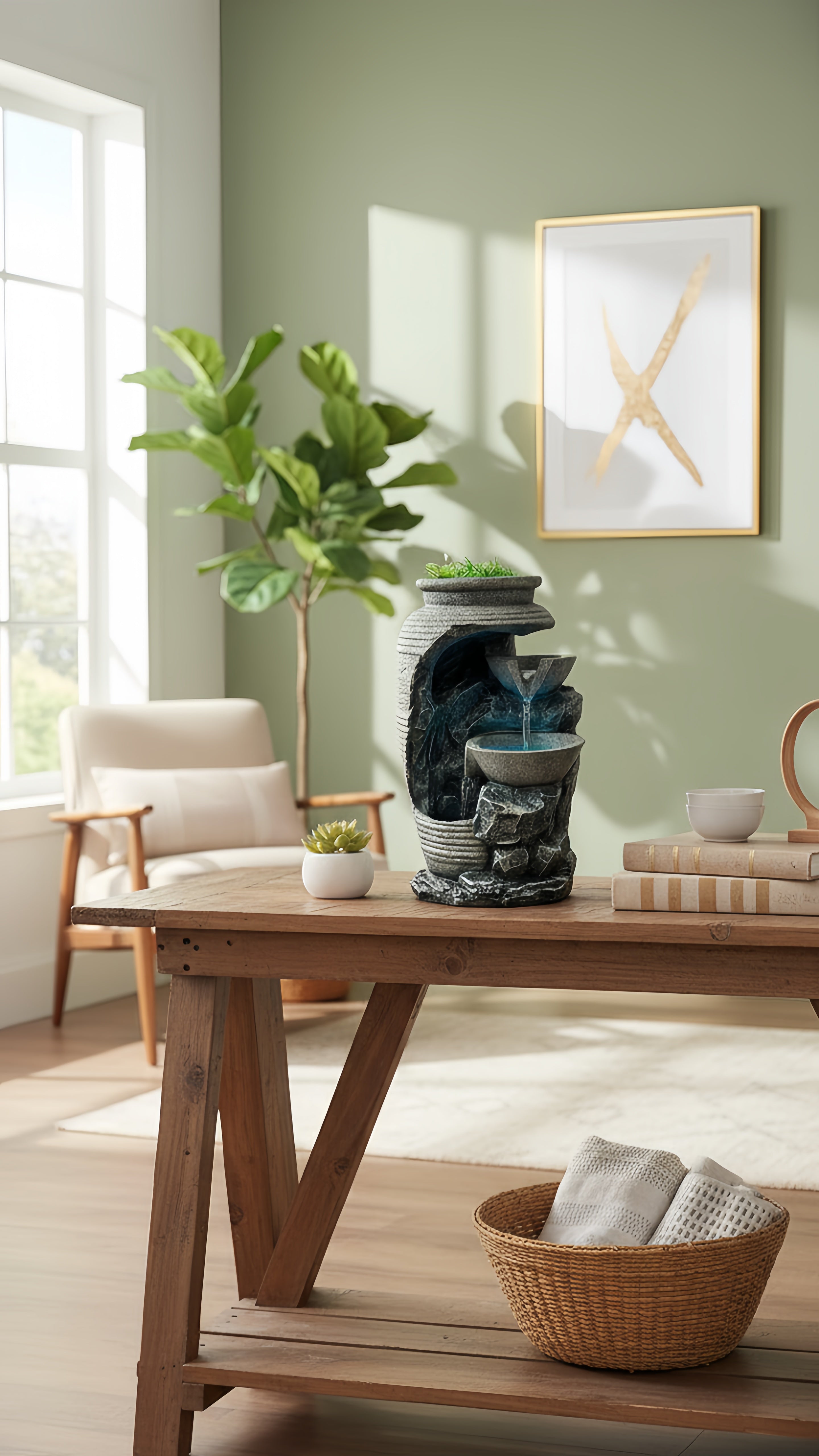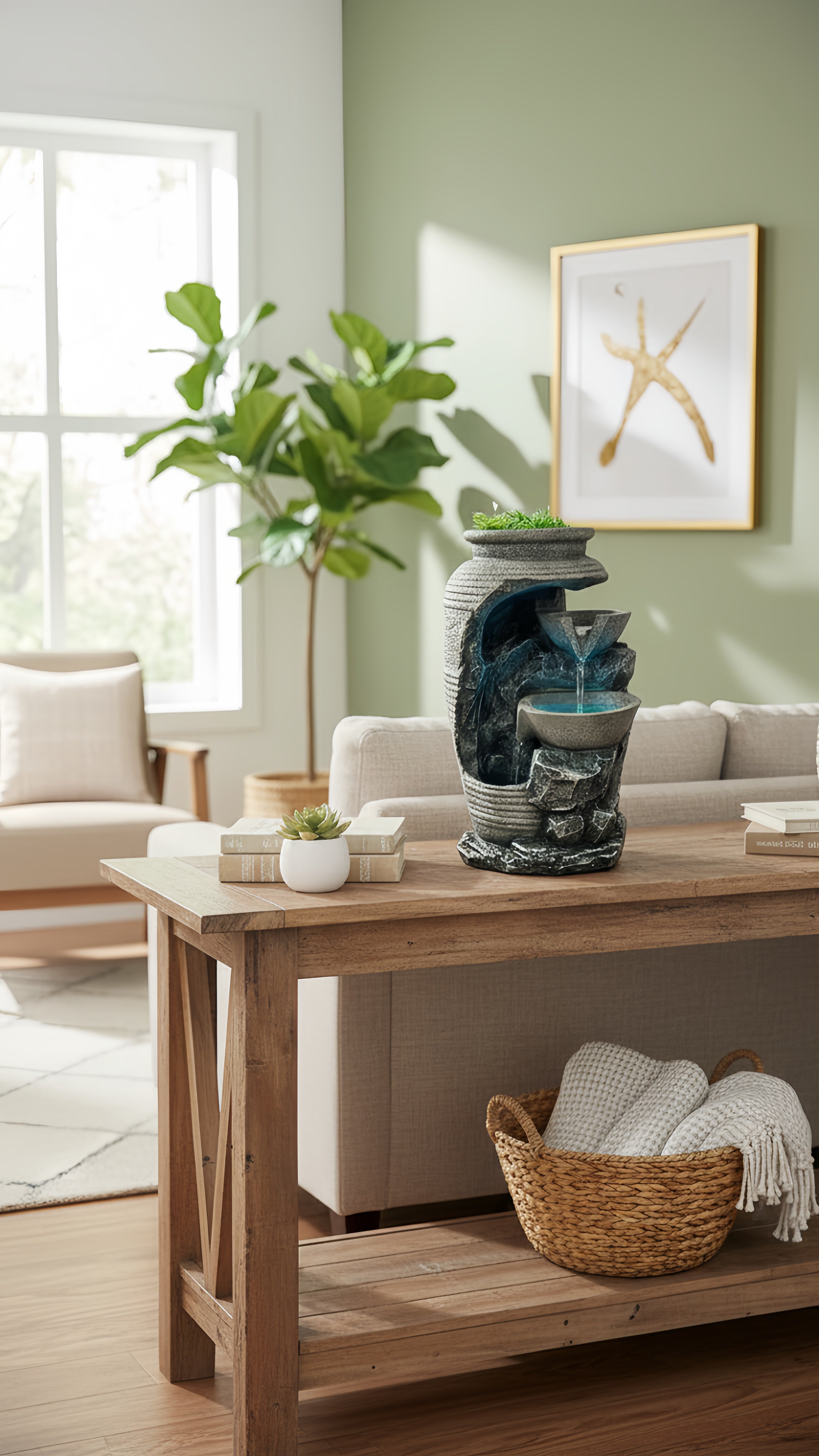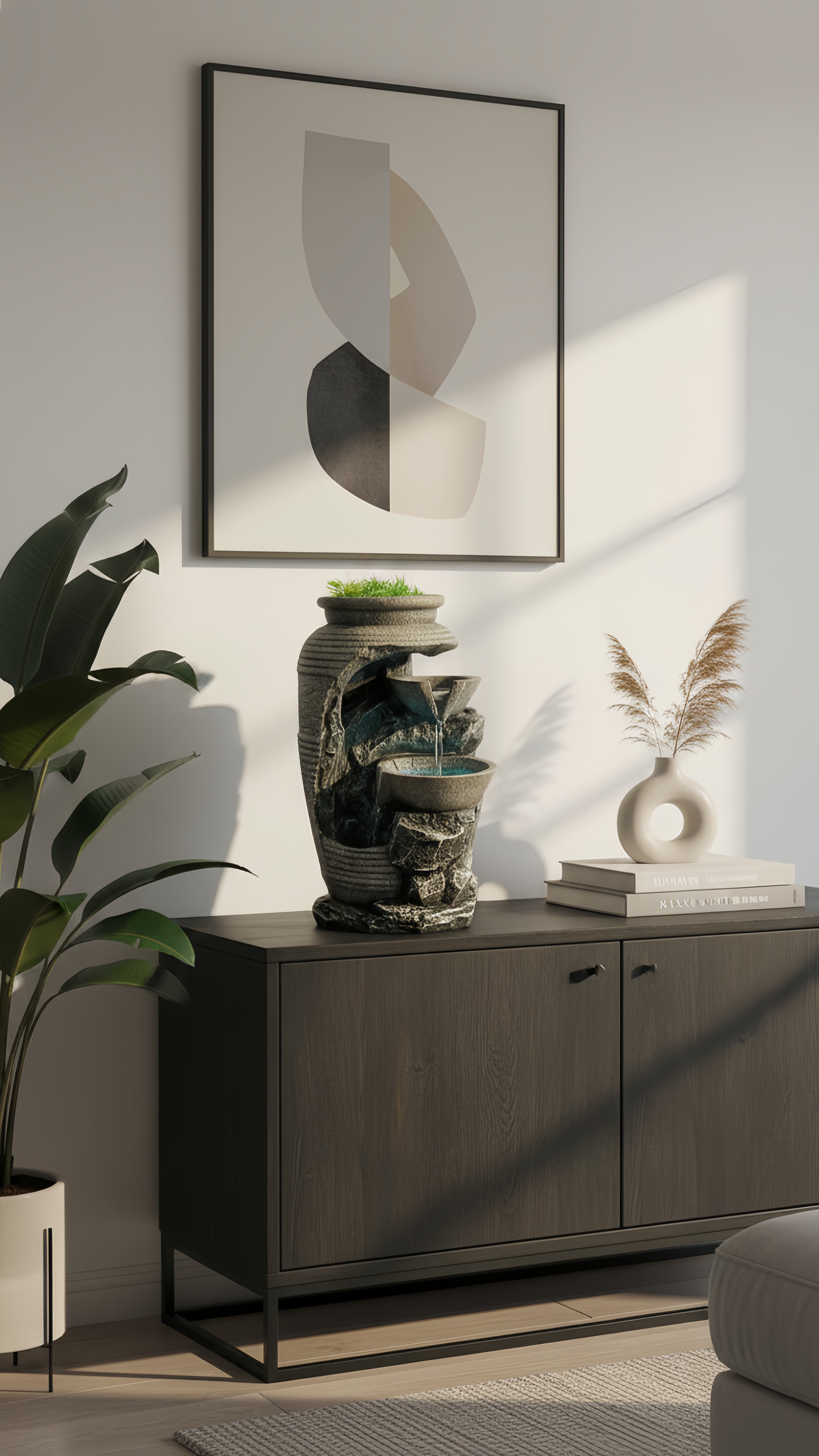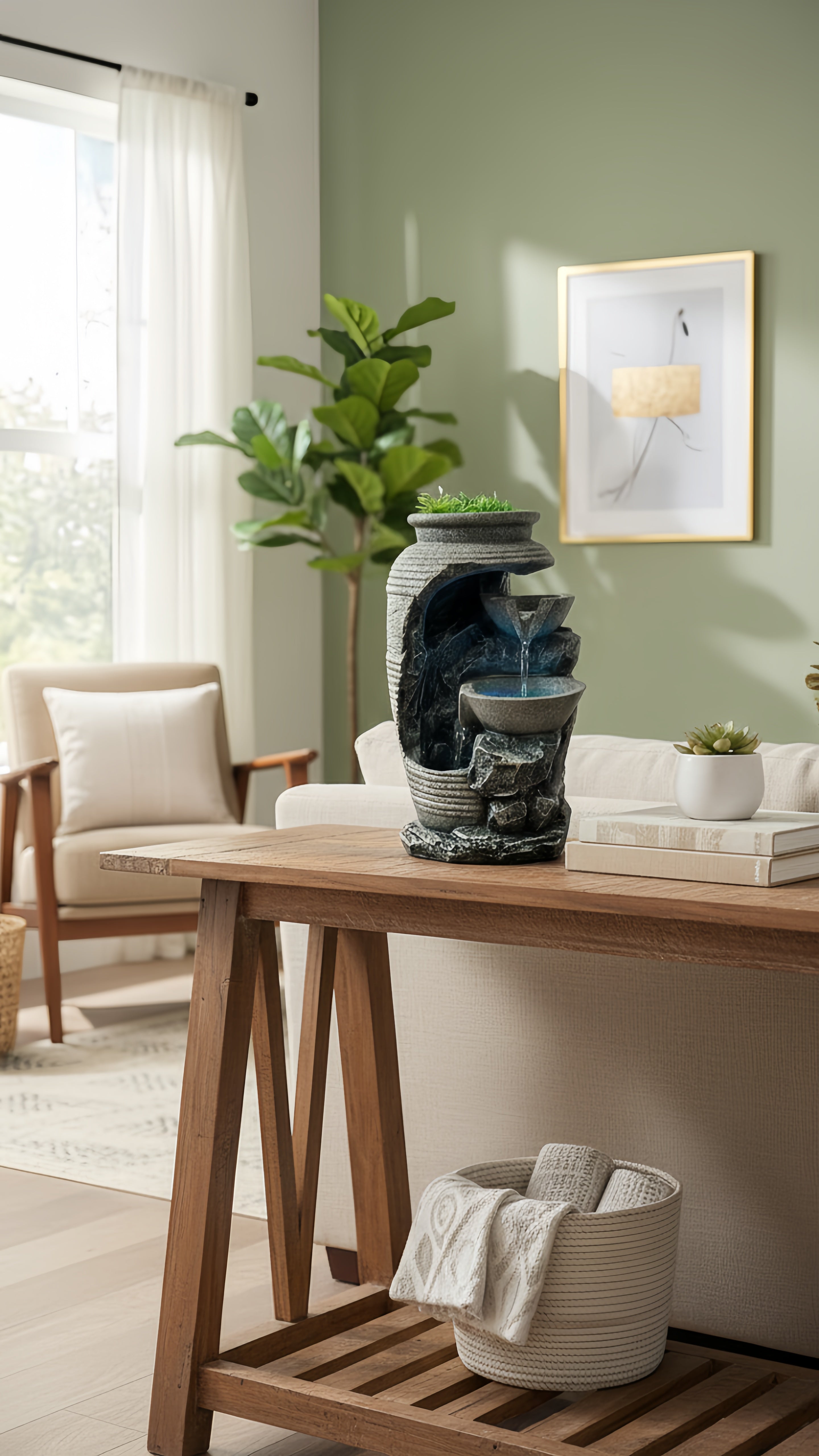Oubliez les décos fades ! Son design moderne, ses finitions pierre et sa touche de verdure créent un point focal élégant. C'est plus qu'une fontaine, c'est une œuvre d'art qui respire la nature, même en plein appartement. Vos amis vont adorer.